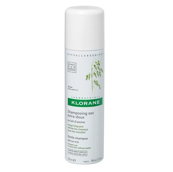Os Laboratórios Klorane conceberam este produto original que permite limpar o cabelo sem o molhar. Prático e rápido de utilizar, o Champô seco extra- suave com leite de aveia KLORANE é ideal para as pessoas com pouco tempo ou as que não têm a possibilidade de lavar o cabelo. As suas propriedades de limpeza devem-se a uma associação original de agentes com um forte poder absorvente, que actuam como autênticas esponjas sobre a sujidade ou sobre as secreções sebáceas do couro cabeludo. O cabelo readquire volume e leveza em poucos minutos. Hipoalergénico.